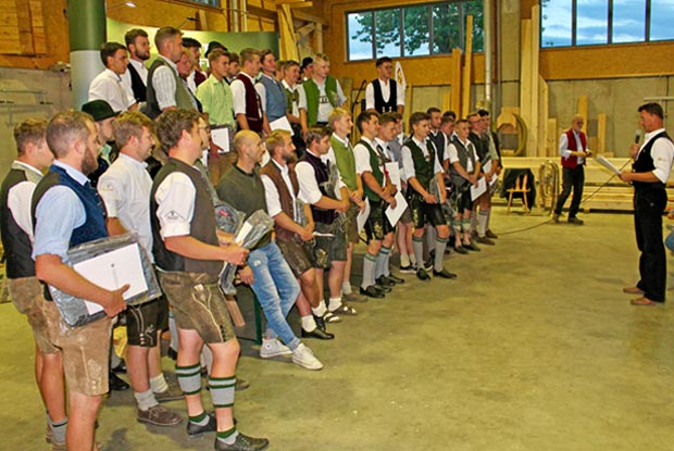 Die Freisprechungsfeier zählt jedes Jahr zu den Höhepunkten der Zimmerer-Innung Rosenheim. Dabei durften 52 Lehrlinge nach mehrjähriger Ausbildung stolz ihren Gesellenbrief in Empfang nehmen. Für die Feier stellte Jürgen Schreiner die Räumlichkeiten seines Holzbaubetriebes in Riedering zur Verfügung.