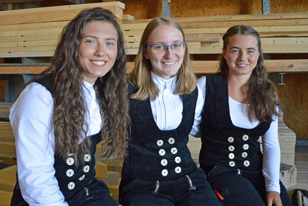 Elisabeth (19), Kathi (21) und Sabrina (19) Schmid sind Cousinen und Zimmerinnen. Im Interview erzählen sie, inwiefern das Zimmererhandwerk in ihren Genen steckt und warum ihre Verwandten anfangs sehr skeptisch waren.