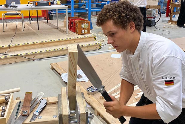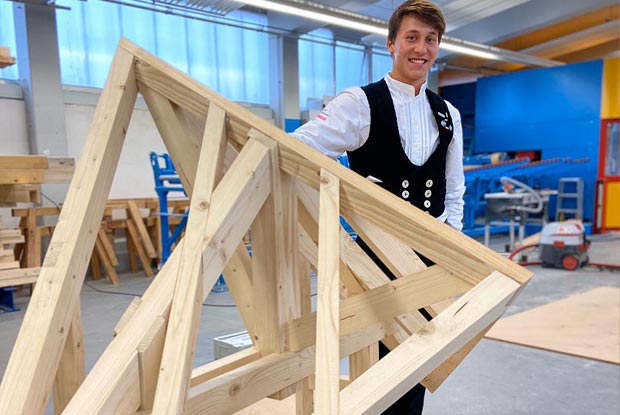 Benedikt Pfister (20) gehört seit 2019 zur Zimmerer-Nationalmannschaft. Als Geselle arbeitet er im Innungsbetrieb Baufritz in Erkheim (ZI Memmingen/Mindelheim). Im Interview erzählt Pfister unter anderem, wie die Zimmerer-Nationalmannschaft aktuell trainiert und welche Hürden er genommen hat, um ins Team zu kommen.